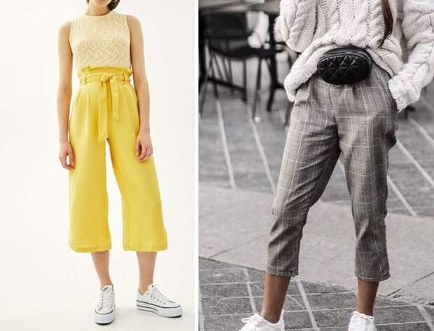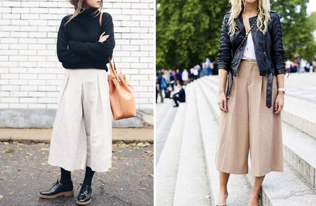 Полюбившиеся многими модницам кюлоты всё еще в моде. Вот только модель эта не всем подойдет — коварная длина «режет» длину ног, так что позволить себе подобную роскошь могут только высокие девушки со стройными ножками.